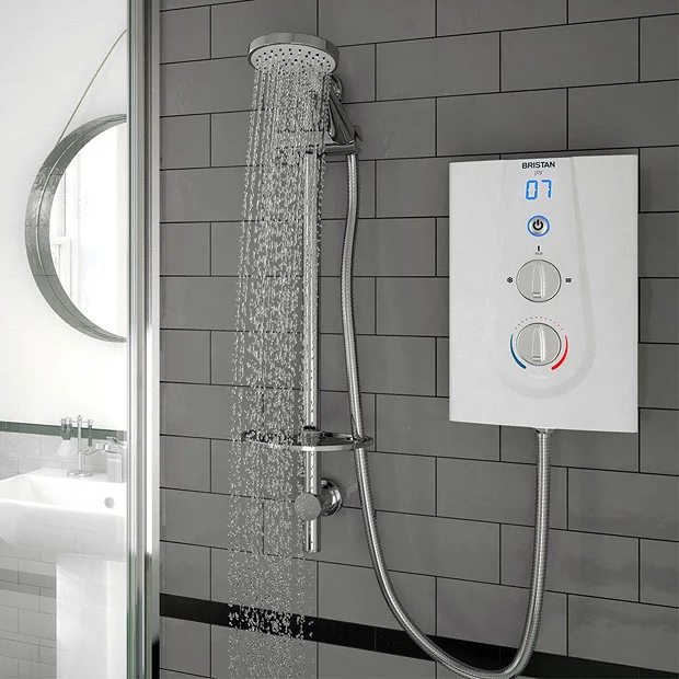 - Instantaneous electric shower drawing water direct from the mains supply; ideal for installations without stored hot water and second bathrooms.