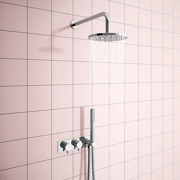 The Cruze modern concealed thermostatic control shower valve has been fitted with a handy shower handset. You can also be rest assured the clever thermostatic shower valve will always keep your water at a safe temperature. Features minimalist round handles this modern style shower valve comes with a matching chrome finish round shower head and is perfect for installing in a concealed arrangement. Valve diverts between two shower accessories.