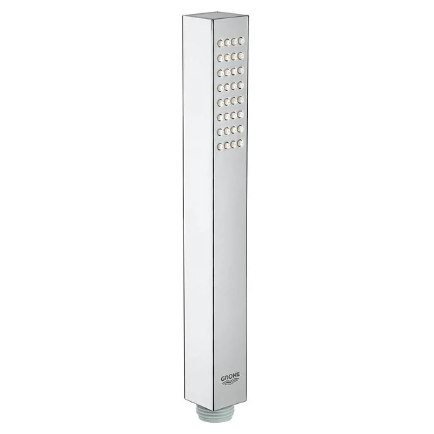 The Euphoria 150 Thermostatic Shower System is the perfect choice for the modern bathroom. It boasts a square 150mm head shower that can swivel to create the perfect angle while the Cube shower handset is height-adjustable and attached to a 1750mm Silverflex twist-free hose. The easy-to-use GROHE SafeStop feature limits the water temperature to a maximum of 38˚C while GROHE TurboStat® technology means you can take a luxurious shower secure in the knowledge the water will stay at the pre-selected temperature even if the water pressure changes.