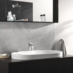 The Eurodisc Joy mono basin mixer is an eye-catching tap with its sleek joystick handle and gleaming chrome finish. The tap features GROHE SilkMove cartridge technology for smooth and precision handling and GROHE EcoJoy which reduces water consumption by up to 50% without compromising on performance. Comes supplied with a pop-up waste set – simply close the pop-up waste by pulling the rod at the back of the tap and push down to open it again to drain the water away.