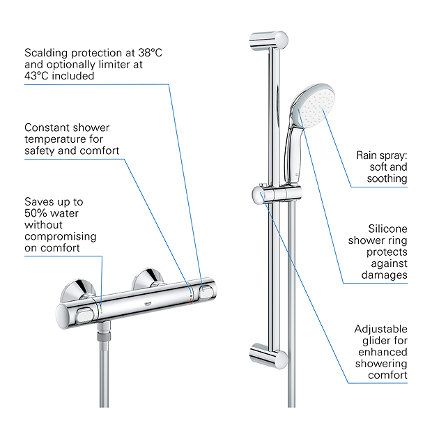 - Constant water temperature thanks to reliable GROHE TurboStat® technology