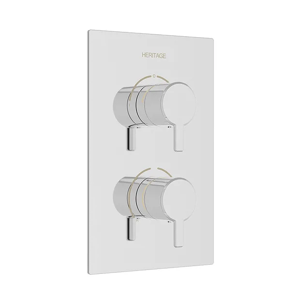 The luxury Dartmouth 2 Outlet Twin Concealed Shower Valve, manufactured from brass with a polished chrome finish, Heritage’s elegant range of shower valves are precision engineered to provide a luxury showering experience. The shower valves are thermostatic so the water stays a consistent temperature even if the water pressure fluctuates. Quality assured by a 5 year guarantee.
