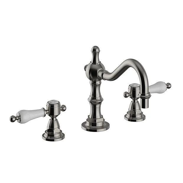 With its striking spout and easy to use ceramic handles levers, the Glastonbury range encapsulates both splendour and practicality. This 3 Hole Swivel Spout Basin Mixer with Pop-up Waste is made from brass with a brushed nickel finish and feature quarter turn levers for easy operation. Comes with a 10 year guarantee covering manufacturing faults.