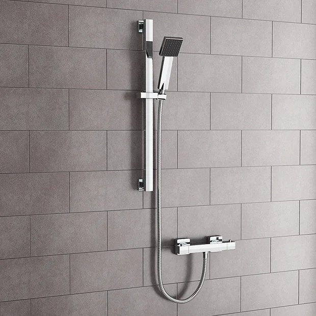 Milan Square Thermostatic Bar Valve & Slide Rail Kit – Chrome