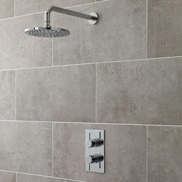 The Quest rectangular concealed thermostatic twin shower valve from Nuie offers a simple shower solution with a neat finish and is suitable for use with all water systems.