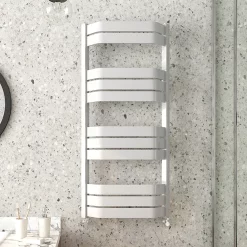 Milan Bathroom Milan Curved White 600 X 500 Horizontal Designer Flat Panel Heated Towel Rail