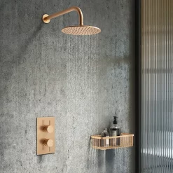 Arezzo Brushed Brass Round Thermostatic Shower Pack With 300mm Ceiling Mounted Head + Handset