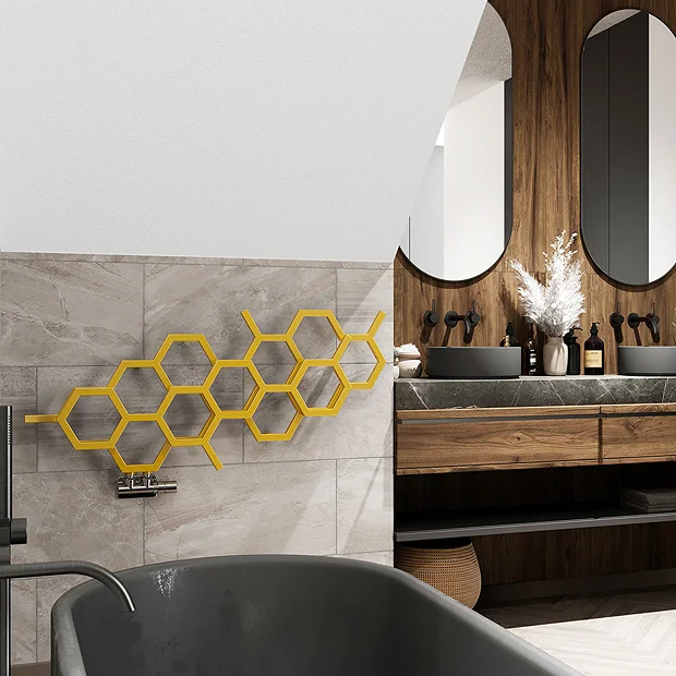 Winner of the IF Design Award 2017, the Terma Hex Radiator has an eye-catching geometric design that helps bring out the character of any room. It includes HXP type mounting brackets that allow you to adjust the distance of the radiator from the wall. Crafted from high grade materials with a Mustard finish.