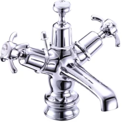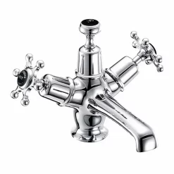 The Burlington Anglesey black 3 tap hole basin mixer is the perfect complement to Burlington’s Jet Black range. This basin mixer is constructed from brass and beautifully finished in chrome. It features traditional screw down valves and comes supplied with a pop-up waste.