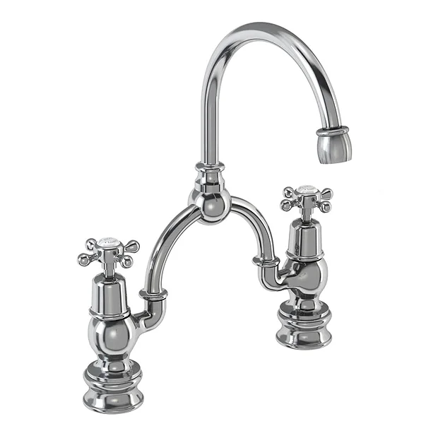 Burlington – Claremont Regent 2 Tap Hole Bridge Curved Spout Basin Mixer (230mm centers) with Invisible Overflow