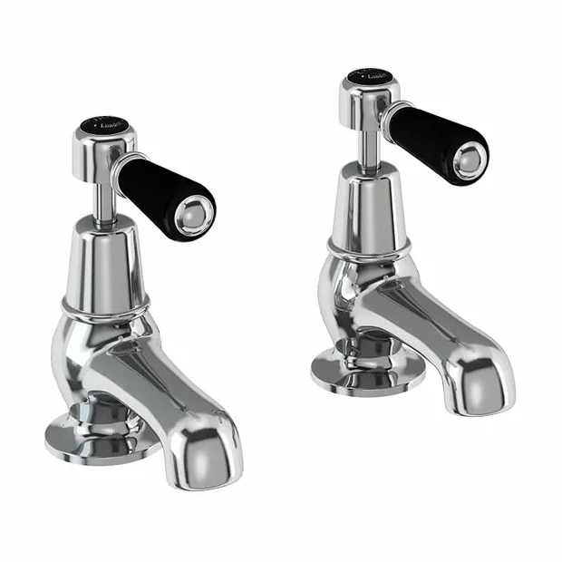 The Burlington Kensington tap range with black ceramic levers is the perfect complement to Burlington’s Jet Black range. These basin taps are constructed from brass and beautifully finished in chrome. It features quarter-turn valves and come supplied as a pair.