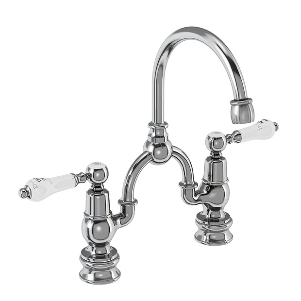 Urlington Bathroom Burlington Kensington Regent Bridge Curved Spout Basin Mixer (200mm Centers) W Plug & Chain