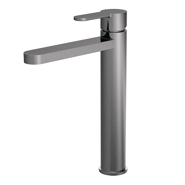 The Venice Giro high rise basin mixer tap features a sleek round edged design with a striking brushed gunmetal grey finish. Made from brass and incorporates ceramic disc technology providing smooth operation and long life.