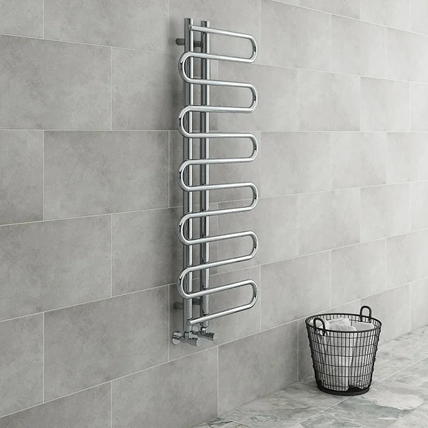 The 1310mm high Kai designer heated towel rail features a unique snaking design. Manufactured from durable steel with a quality polished mirror chrome finish, this stylish towel rail provides superb heat output which will gently warm towels and your bathroom or cloakroom.