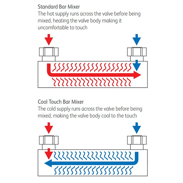 The stylish ‘Cool Touch’ thermostatic bar valve with slider rail kit, designed to provide safe showering for all the family. This stunning exposed minimalist chrome bar valve has separate controls for temperature and flow. Cold water is circulated around the bar valve itself so that it is cool to the touch. Bar valve comes with a quality slimline slide rail kit with multi-function handset featuring a sleek, modern slide rail with a three spray multi-function handset.
